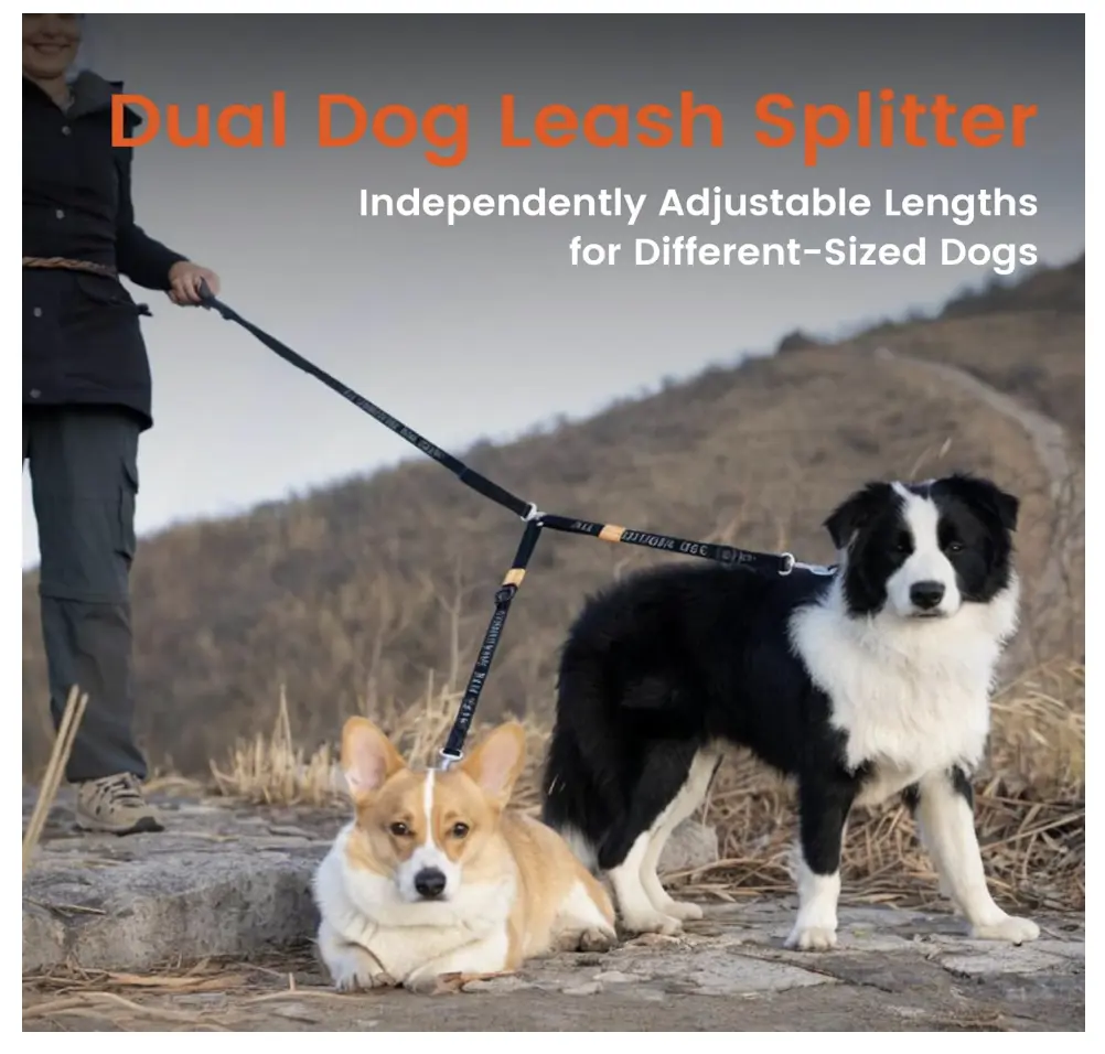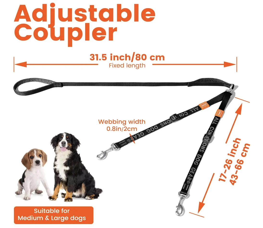 【Customizable Length for Optimal Comfort】 : The splitter leashes can be extended from 17 to 26 inches, offering flexibility and comfort. Featuring adjustable buckles, you can independently customize the length for each dog, giving them more room to move while maintaining control. It’s perfect for walking, training, or running with two dogs at once.