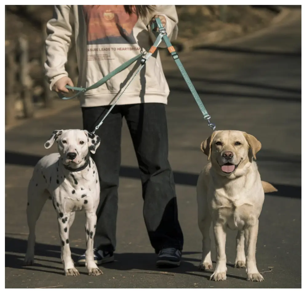 【Dual Dog Slip Leash】 : The HowGo Dual Dog Slip Leash is perfect for walking two dogs at once. Featuring adjustable lengths and a 360° rotating design, it provides an efficient solution for pet owners who want a hassle-free walking experience without the need for multiple leashes.