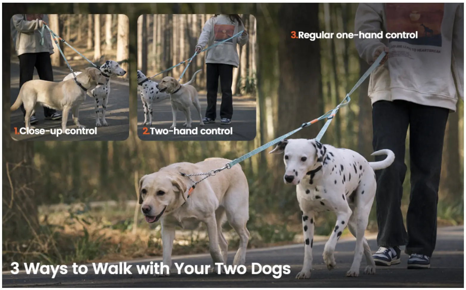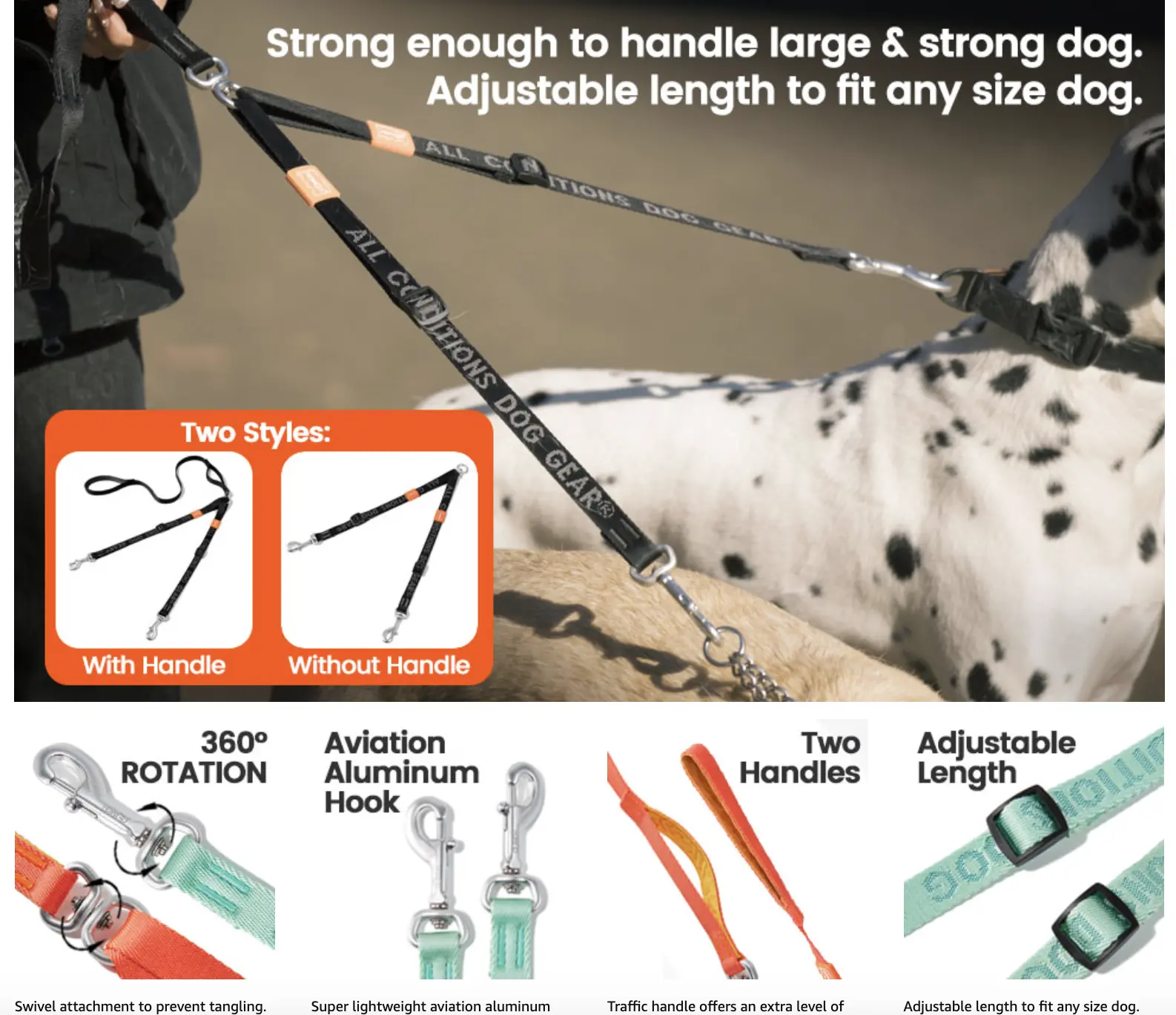 【Choose Your Preferred Handle Option】 : Whether you prefer extra comfort or a minimalistic design, the HowGo Double Dog Leash offers flexibility. Add our padded handle for enhanced comfort during long walks, or use the leash splitter with your regular leash for everyday convenience. Two webbing width options are available to accommodate different dog sizes.