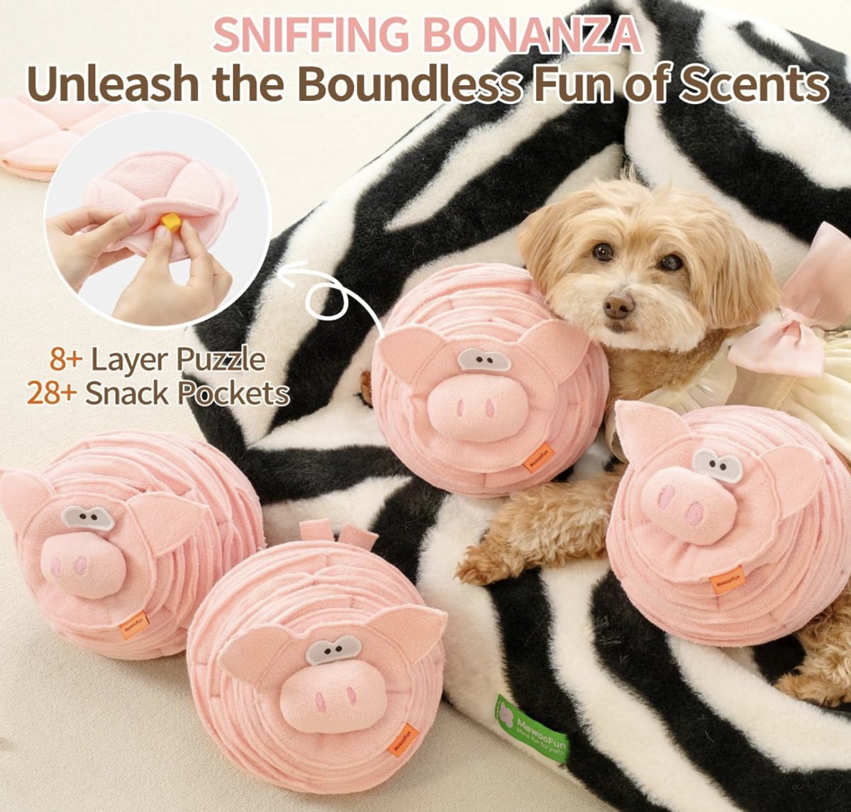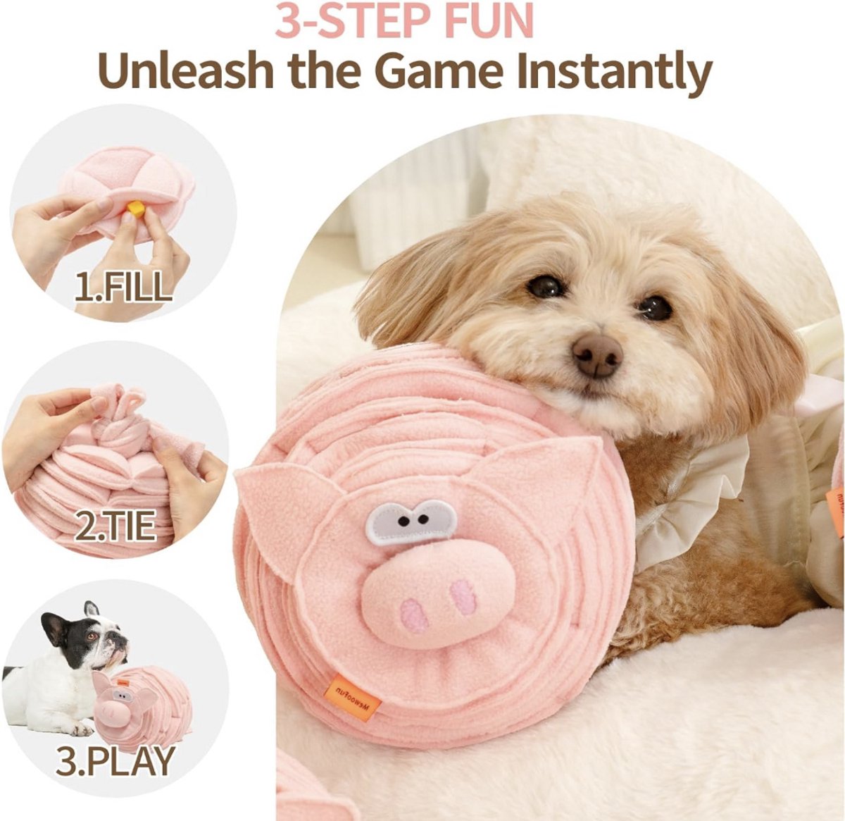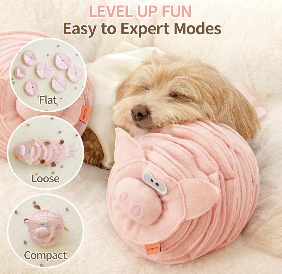 Make playtime fun and mentally stimulating with this interactive pig snuffle toy, designed to engage your dog’s natural foraging instincts. With multiple layers for hiding treats and a plush, chew-resistant build, this toy offers both comfort and enrichment for dogs of all sizes.